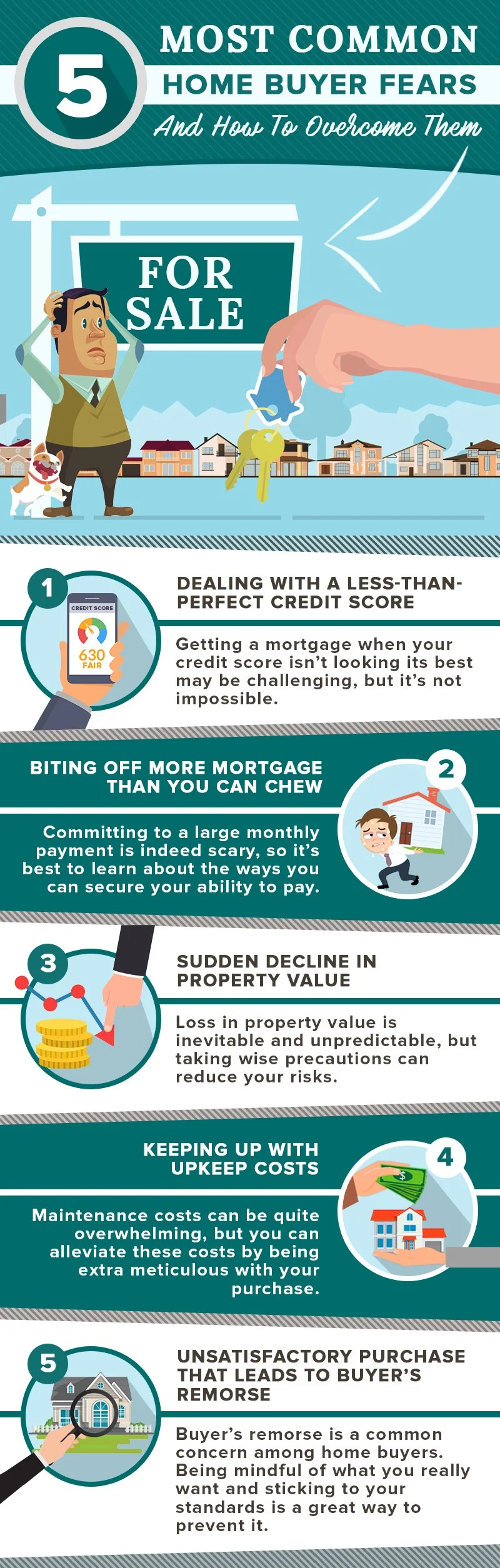 While buying real estate entails a lot of careful planning and extensive research, you won’t be going through it alone. Your agent will be there to help you every step of the way. Even so, we understand that peace of mind can still seem elusive and that your fears can bubble up to the surface even when you least expect it. To help you with this, we have listed down the top 5 fears homebuyers have, and a guide on how to overcome them: